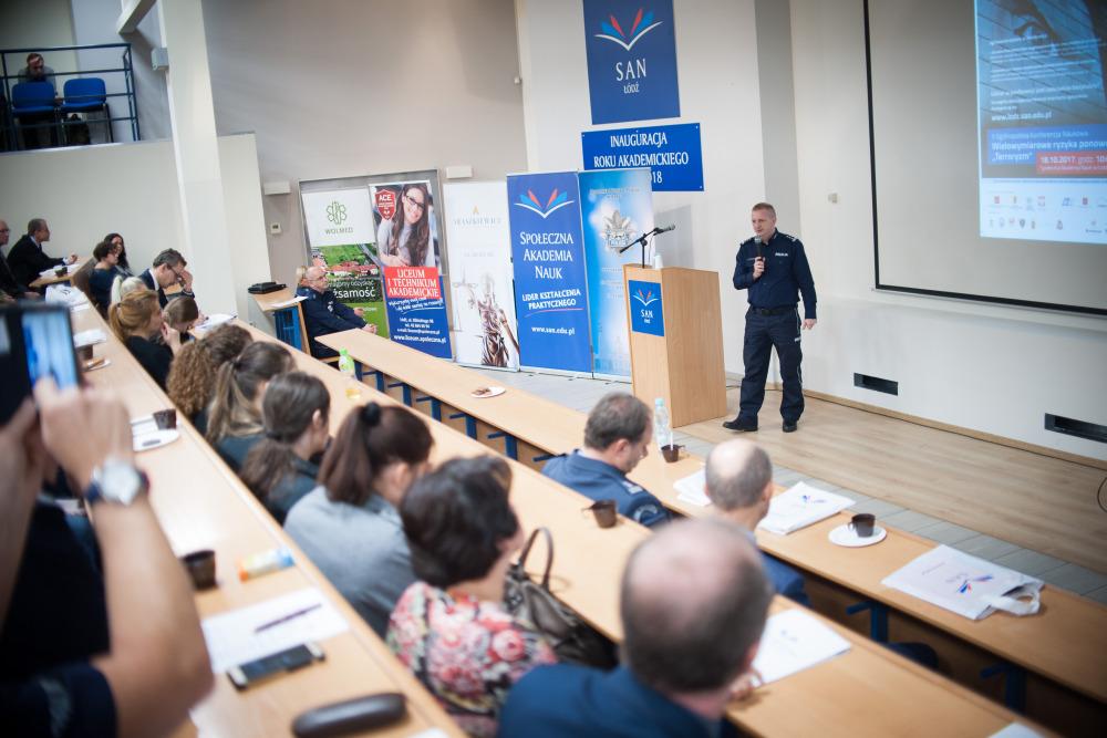 Ponad 300 uczestników z wielu środowisk zawodowych uczestniczyło 18 października 2017 roku w zorganizowanej przez policjantów Komendy Miejskiej Policji w Łodzi oraz pracowników naukowych Społecznej Akademii Nauk konferencji naukowej poświęconej problematyce terroryzmu. Wśród gości wydarzenia byli: Dariusz Klimczak – Wicemarszałek Województwa Łódzkiego, insp. Andrzej Łapiński – Komendant Wojewódzki Policji w Łodzi, Olivier Ordas - Attaché do Spraw Bezpieczeństwa Wewnętrznego Ambasady Francji.